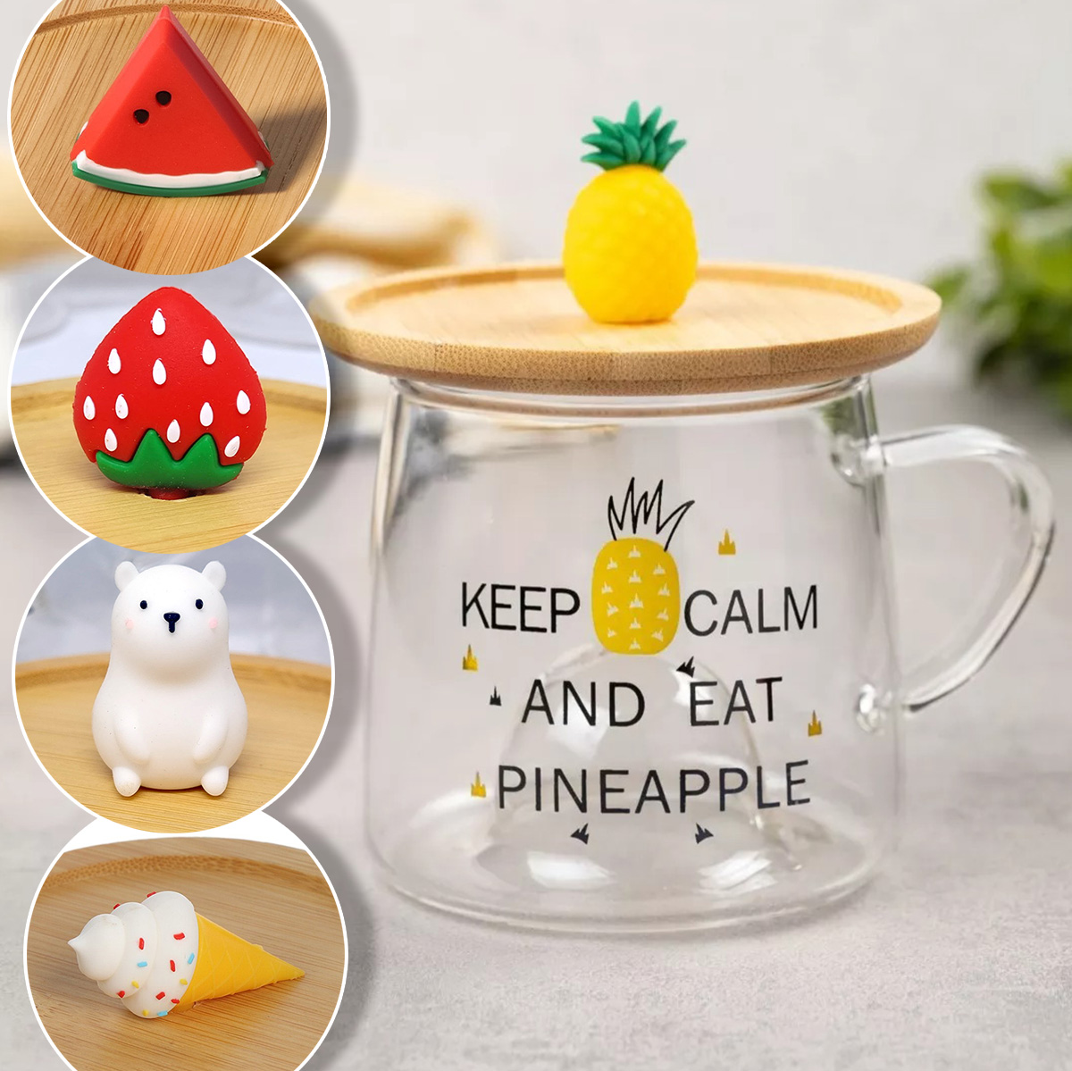 ATENÇÃO: escolha o tema do enfeite dentre abacaxi, melancia, morango, sorvete ou urso. A estampa contida no vidro da xícara é sortida.